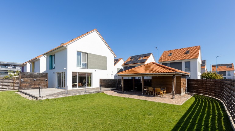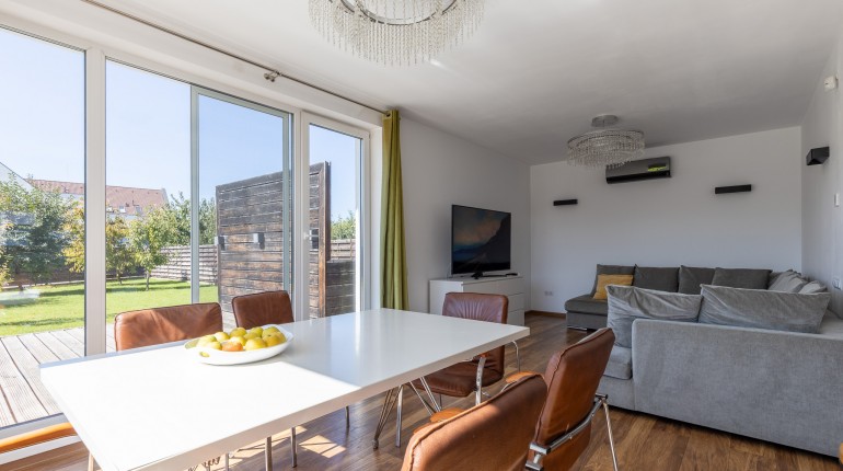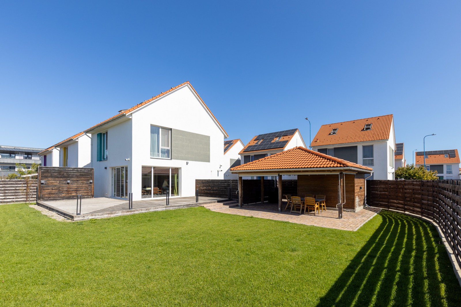 Construită acum 6 ani, proprietatea se remarcă prin izolație eficientă, încălzire în pardoseală și spații luminoase. Suprafața utilă este de 130 mp, iar grădina are o suprafață de 400 mp. Proprietatea include și două locuri de parcare.