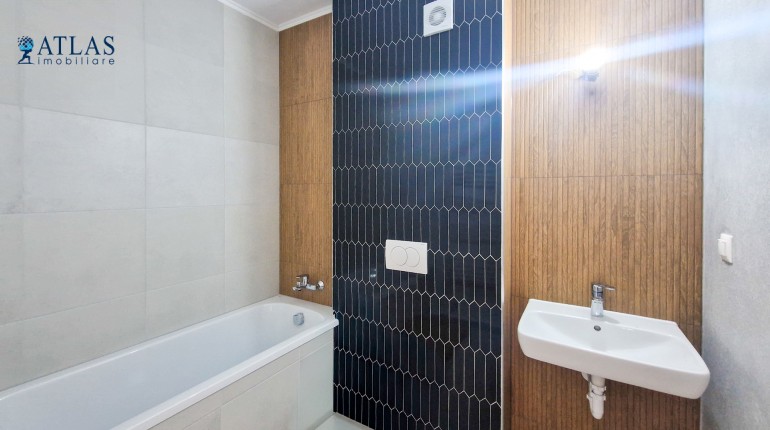 Baia apartamentului se acceseaza din holul de la intrare si este cu vana.
