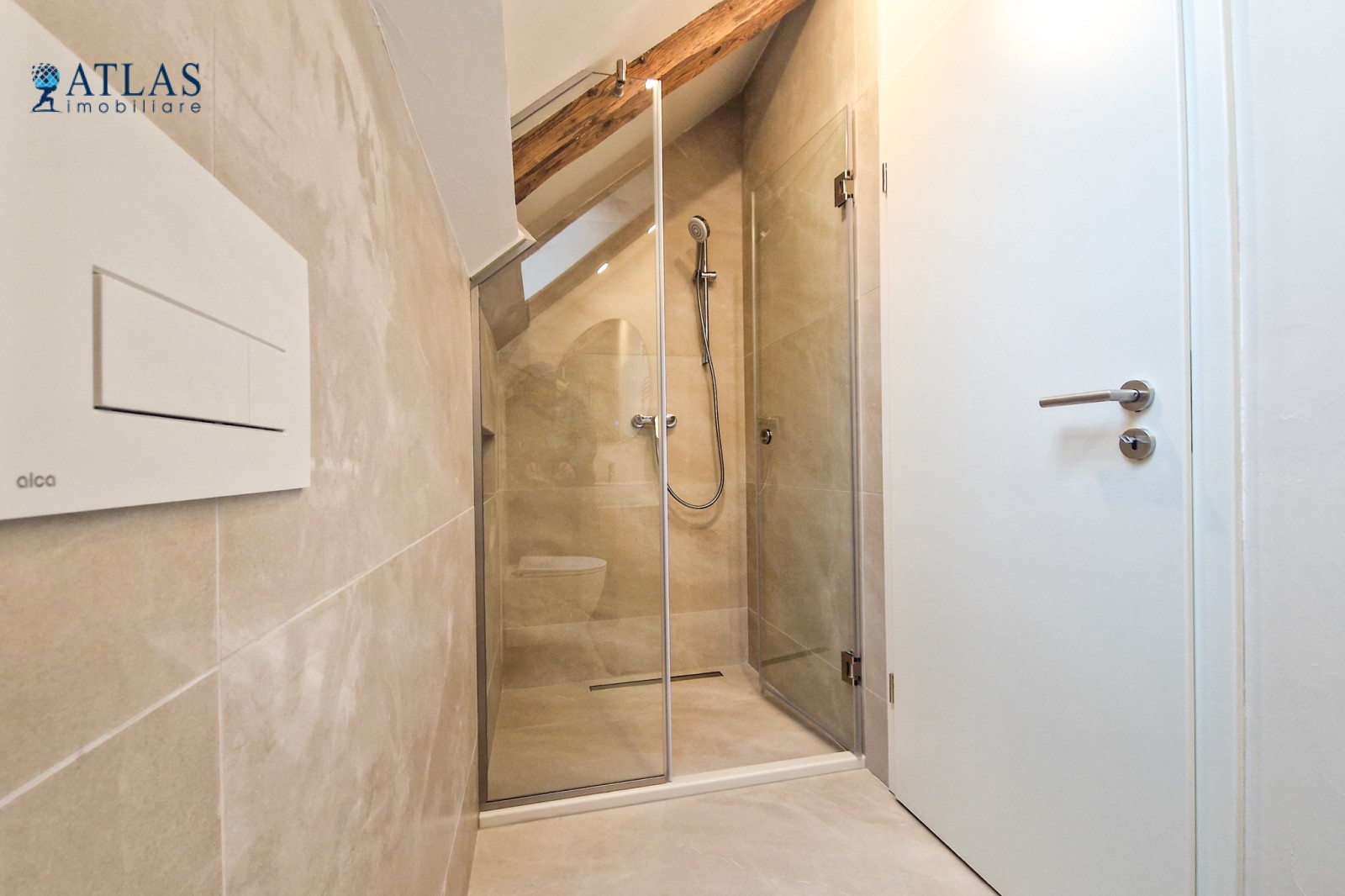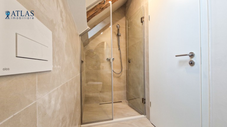 Baie cu dus si geam tip Velux, pentru aerisire naturala;