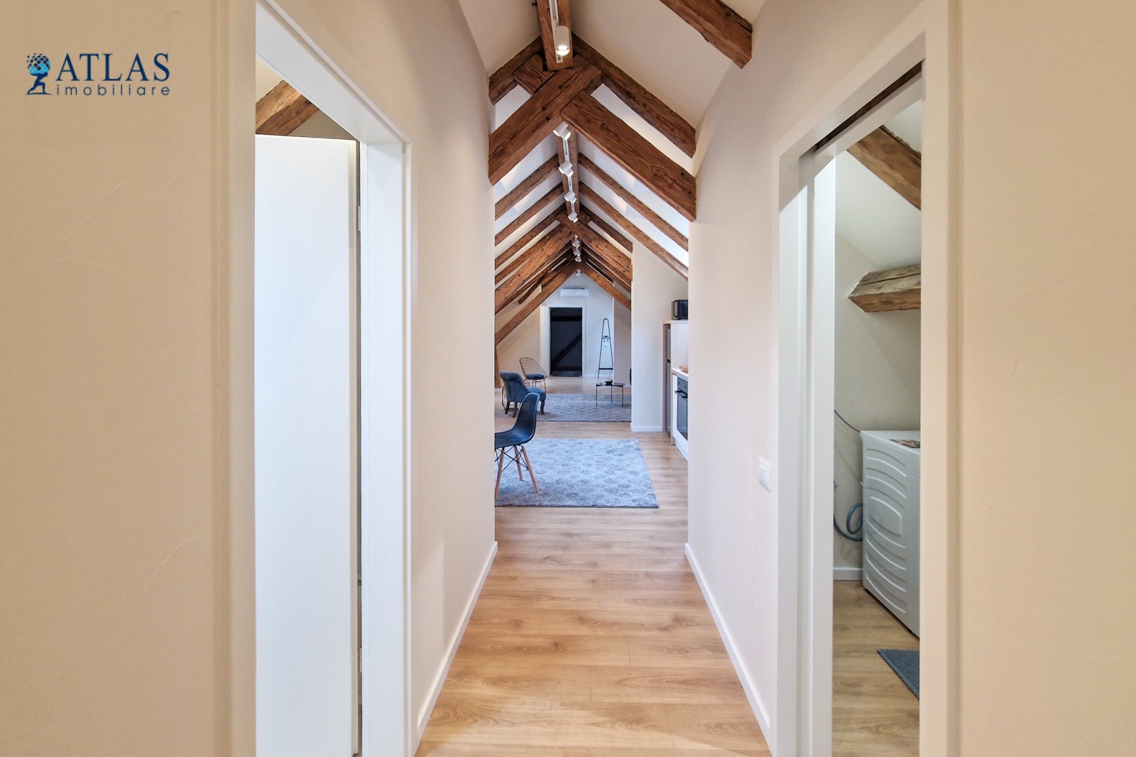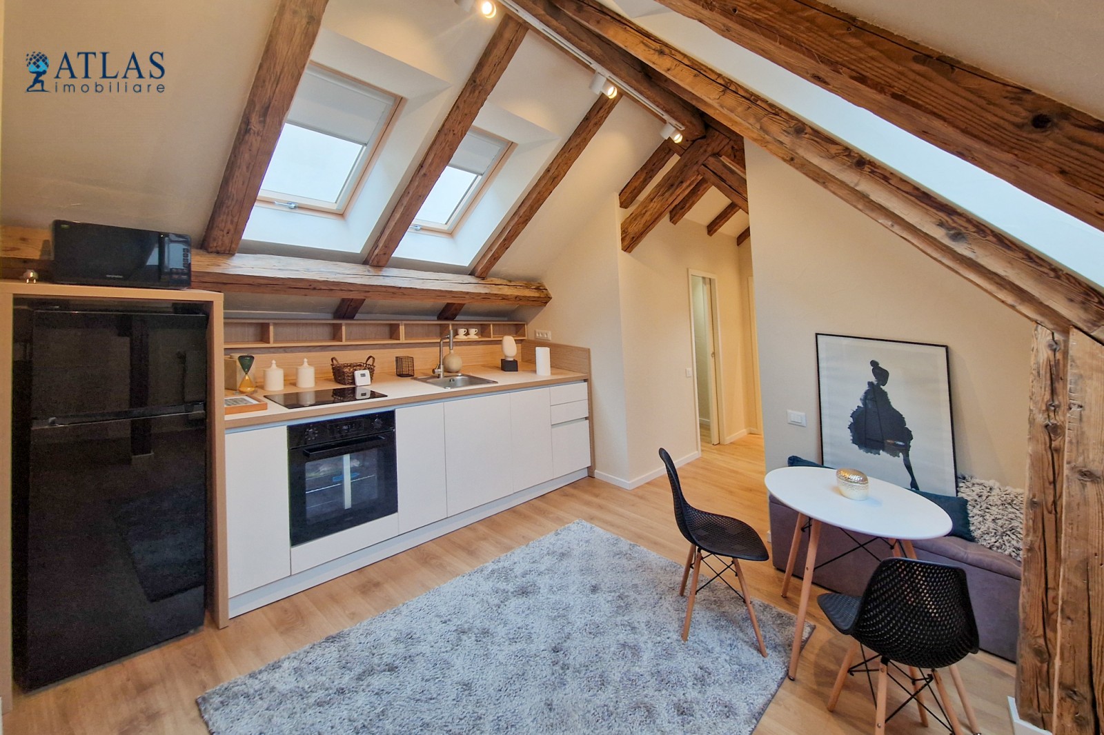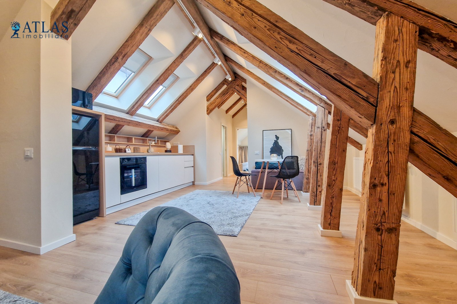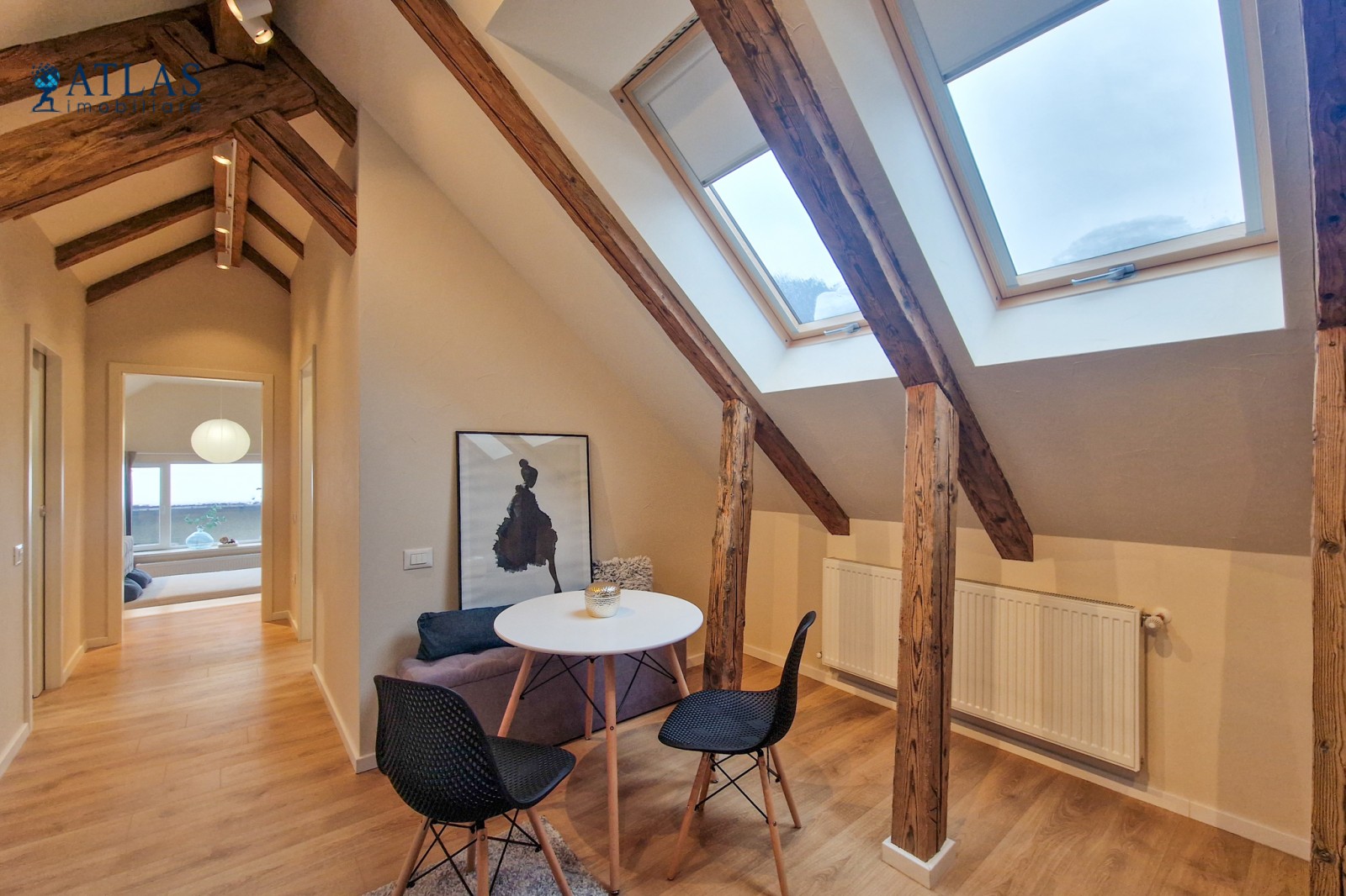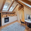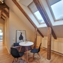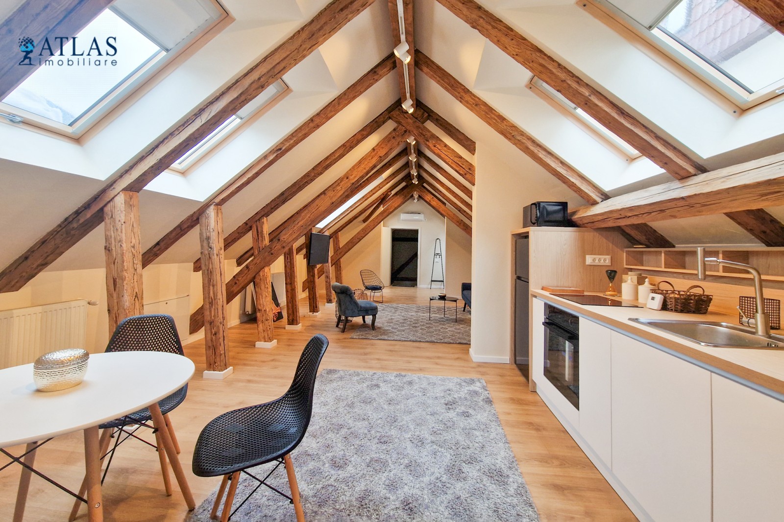 Design-ul orientat spre stilul unui chalet de lux, pastrarea unor elemente aparente ale structurii de lemn care imbina elemente rustice cu elemente minimalist contemporane, pozitia acestei proprietati, amenajarea ergonomica si spatiul foarte generos de peste 100 mp., fac din aceasta proprietate locuinta ideala pentru o persoana single sau pentru un cuplu.