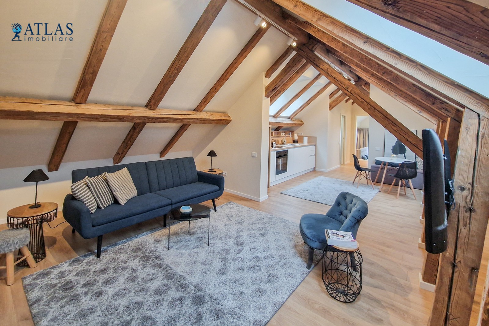 Amenajat cu multa atentie in stil modern - scandinav cu influente alpine, acest apartament cu 2 camere, bucatarie, baie, birou, are suprafata generoasa de 100 mp.
