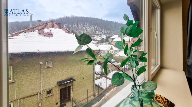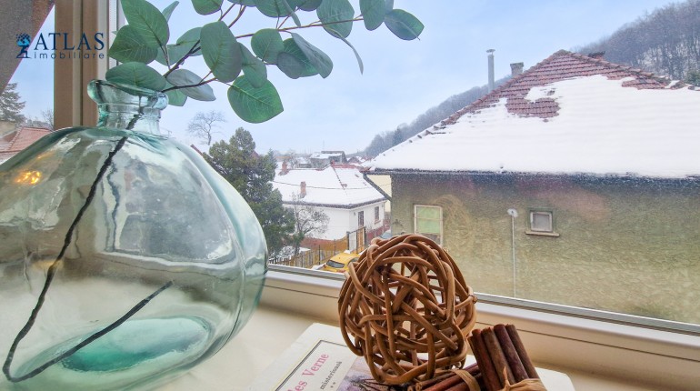 Apartamentul este situat la mansarda unei case solid construite, orientarea este catre sud - est, privelistea ofera o perspectiva larga asupra zonei de case si vile din apropiere precum si catre padure.