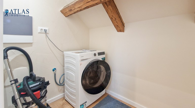 Camera tehnica este separata, cu masina de spalat haine si zona de depozitare.