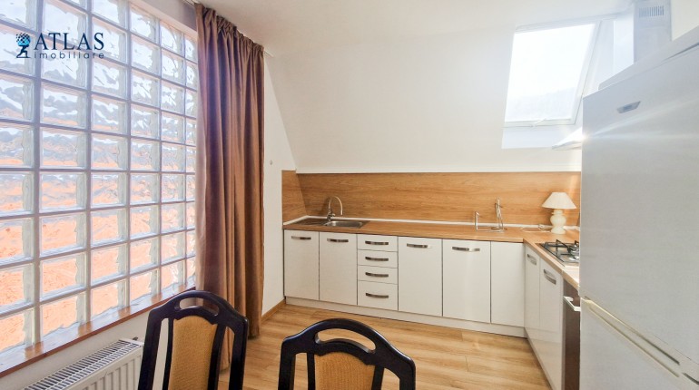 Apartamentul are incalzire cu centrala termica pe gaz, proprie. Finisajele sunt cu parchet laminat, geamuri tip termopan pvc, geamuri tip mansarda Velux, mocheta, faianta si gresie. Usile sunt clasice, din lemn.