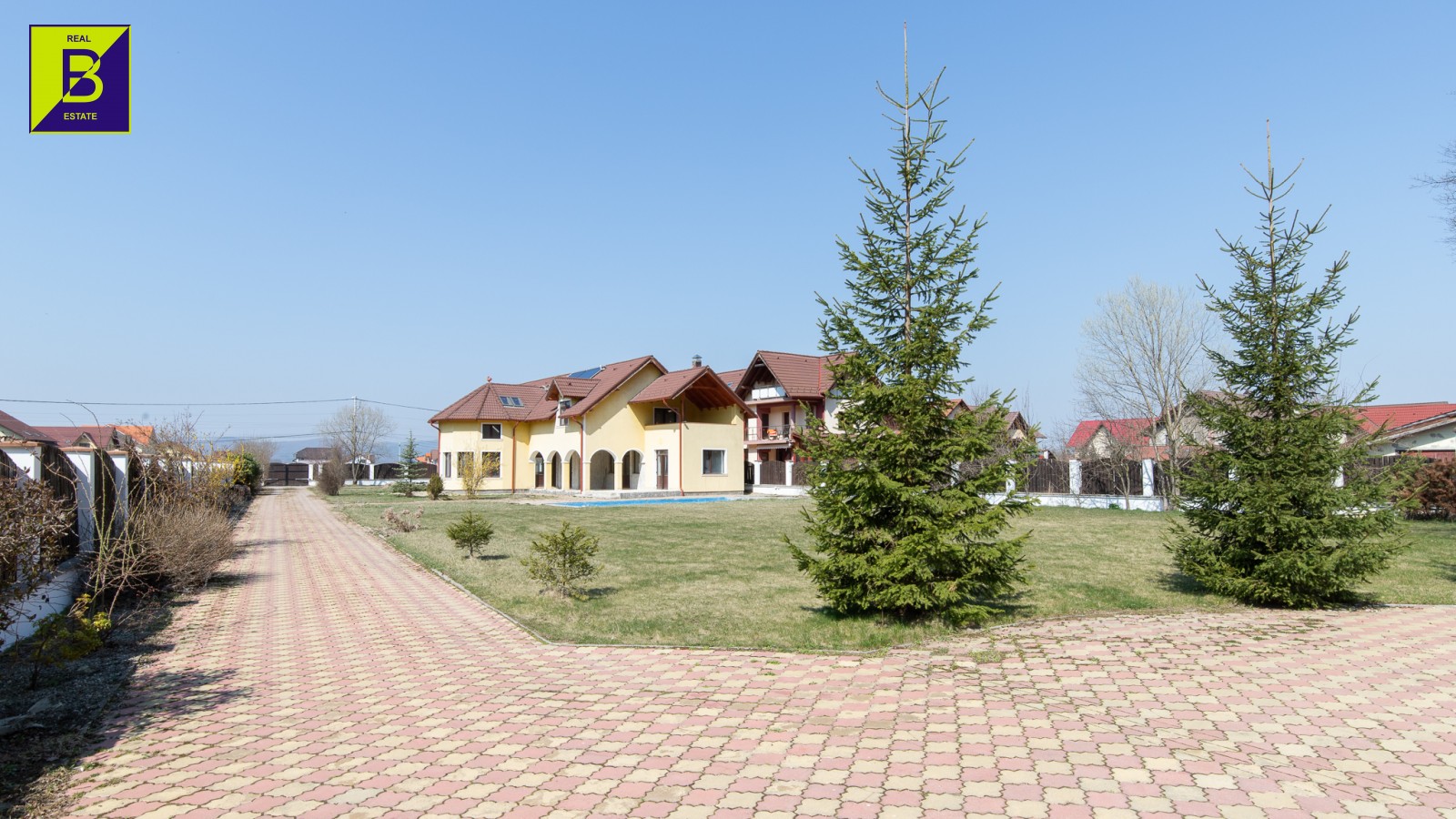 Imobilul in suprafata desfasurata de aproximativ 300 mp, este amplasat pe un teren plan in suprafata de 3000 mp.