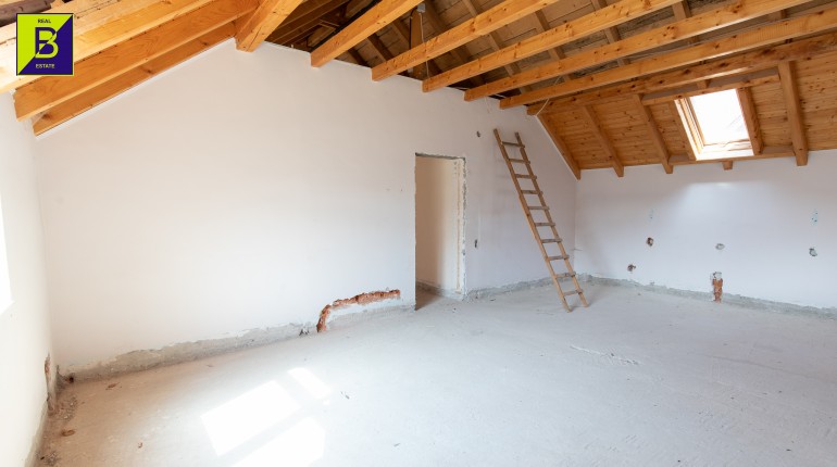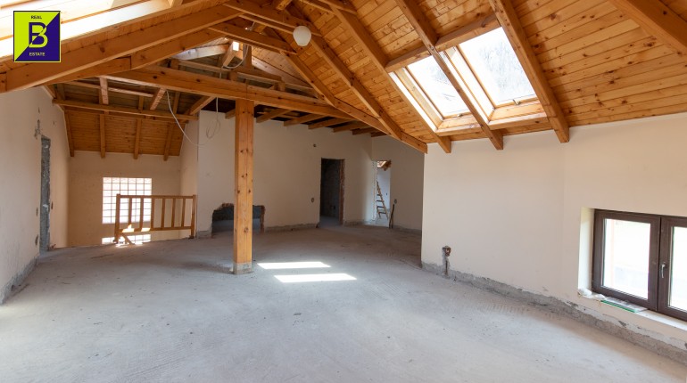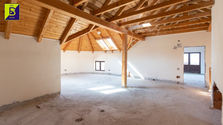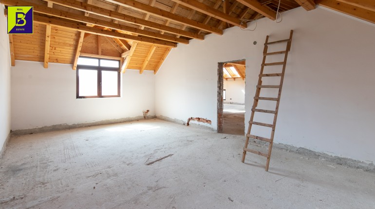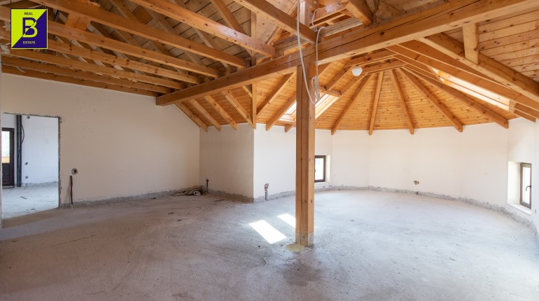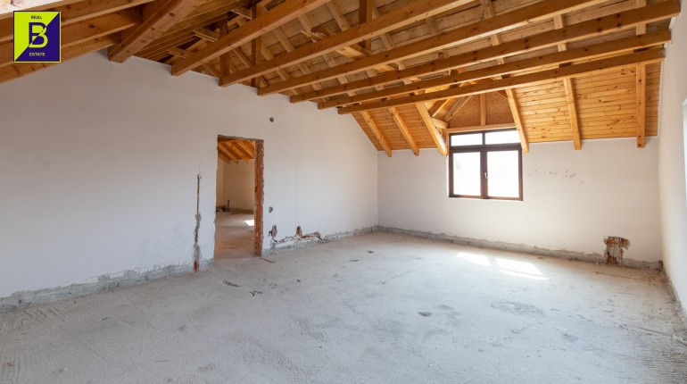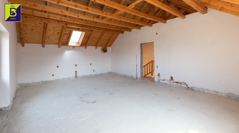 Casa este dispusa pe doua nivele, parter si mansarada, compusa din 5 camere, 3 baie, bucatarie si spatii tehnice. Deasemenea beneficiaza de anexe , printre care si un garaj tripul.